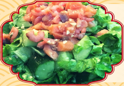 помидор, огурец, перец, сыр Фетакса, лист салата, маслины